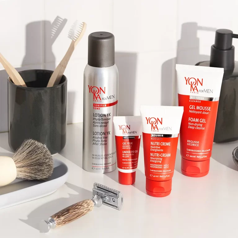 This mask-cream is recommended for sensitive and redness-prone skin. Signs of skin sensitivity (tautness, itching, …) are calmed, and the appearance of redness is visibly improved. Essential ingredients: arnica, yarrow, German chamomile, horse chestnut, hamamelis, marshmallow, grain germ oil, St. John’s wort, horsetail rich in silicon, balm, Quintessence Yon-Ka*.